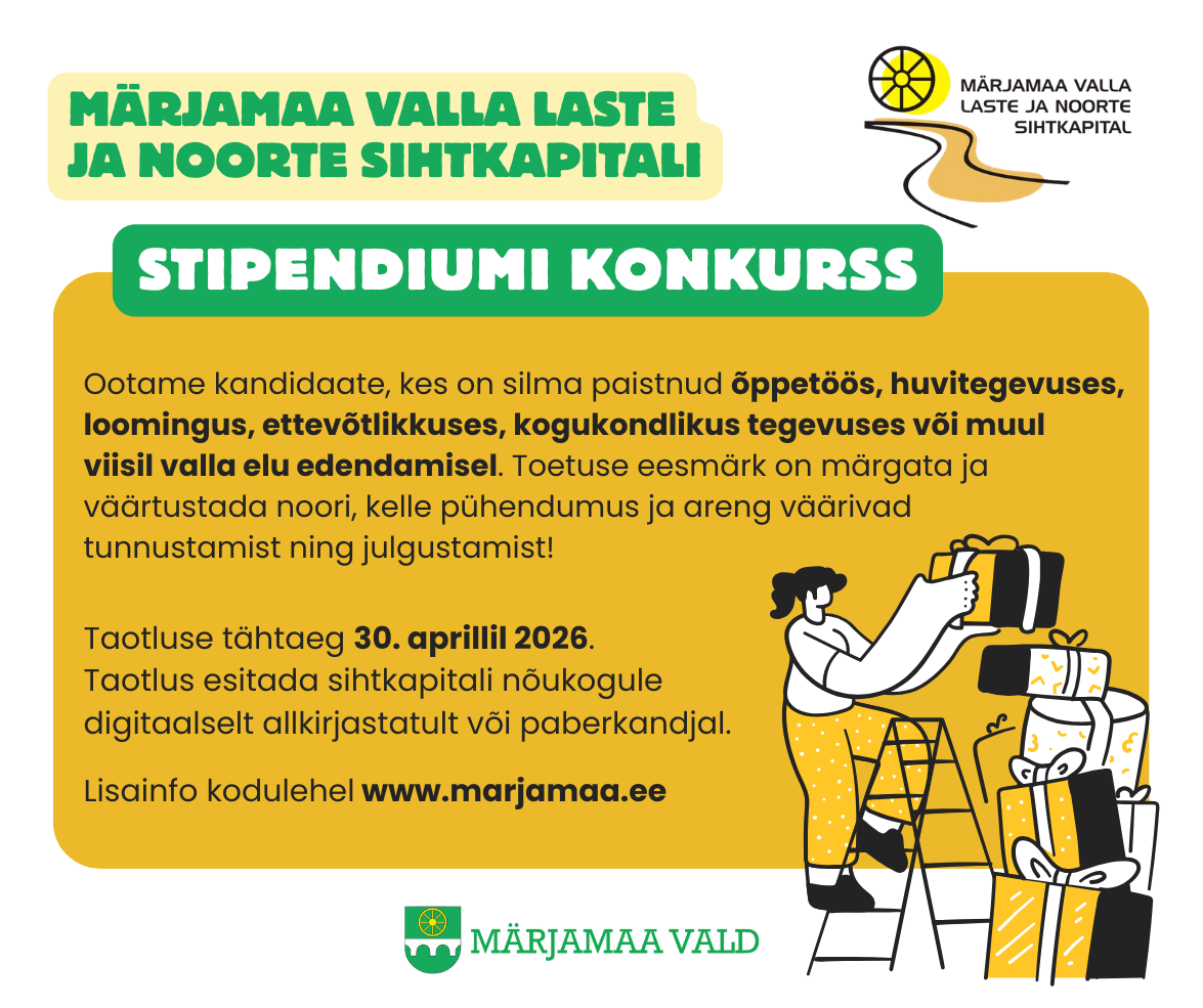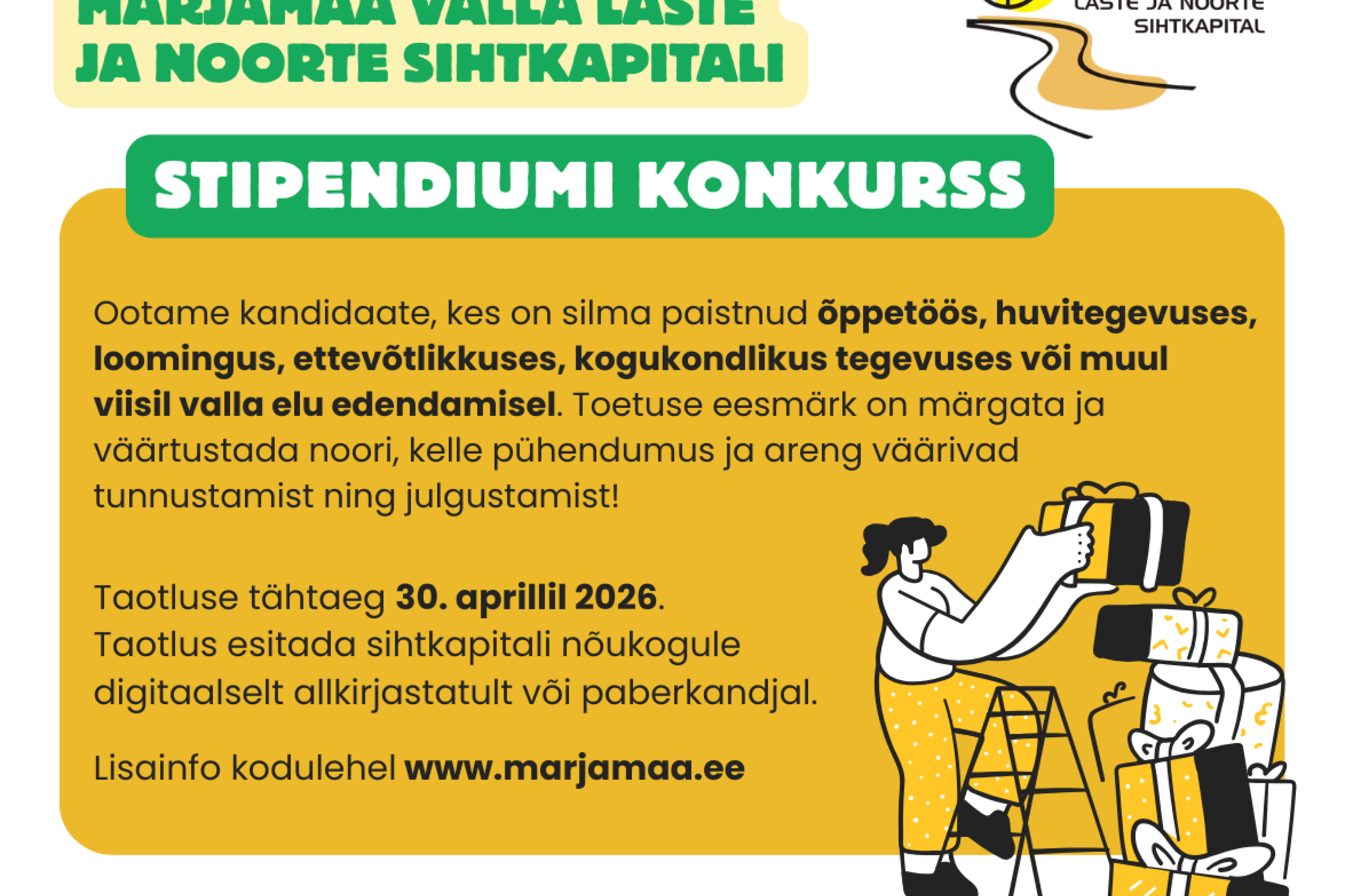 Sihtkapitali „Märjamaa valla laste ja noorte sihtkapital“ moodustamise ja kasutamise kord on avaldatud Riigi Teatajas https://www.riigiteataja.ee/akt/417102018014link opens on new page ning on leitav ka valla kodulehelt https://marjamaa.ee/vald-uudised-kontakt-ettevotlus/valla-info/tunnustusedlink opens on new page