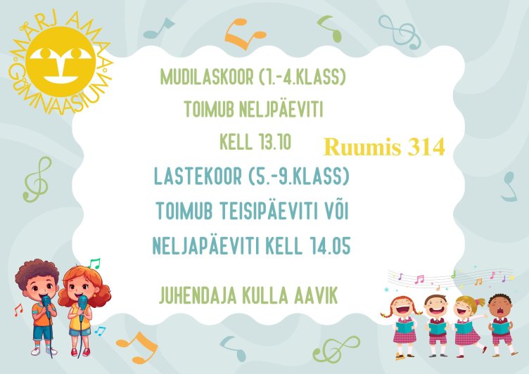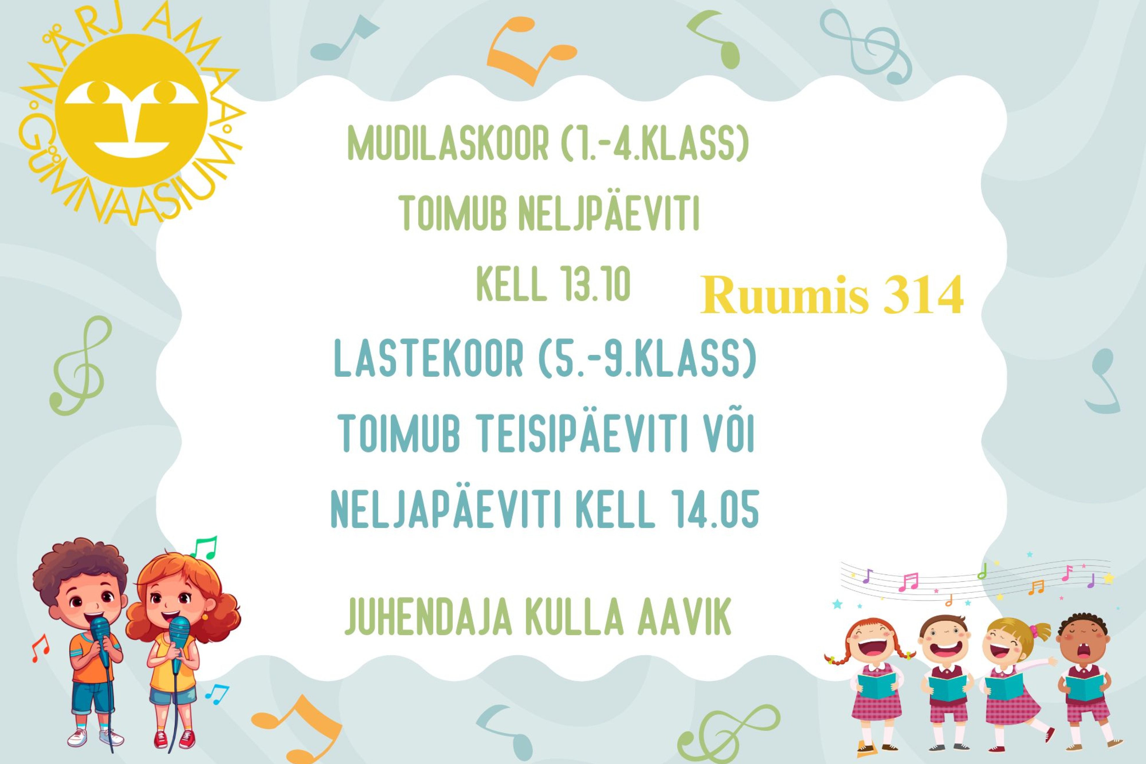 Kõik kooriproovid toimuvad ruumis 314-kohas, kus laul ja rõõm käivad käsikäes!