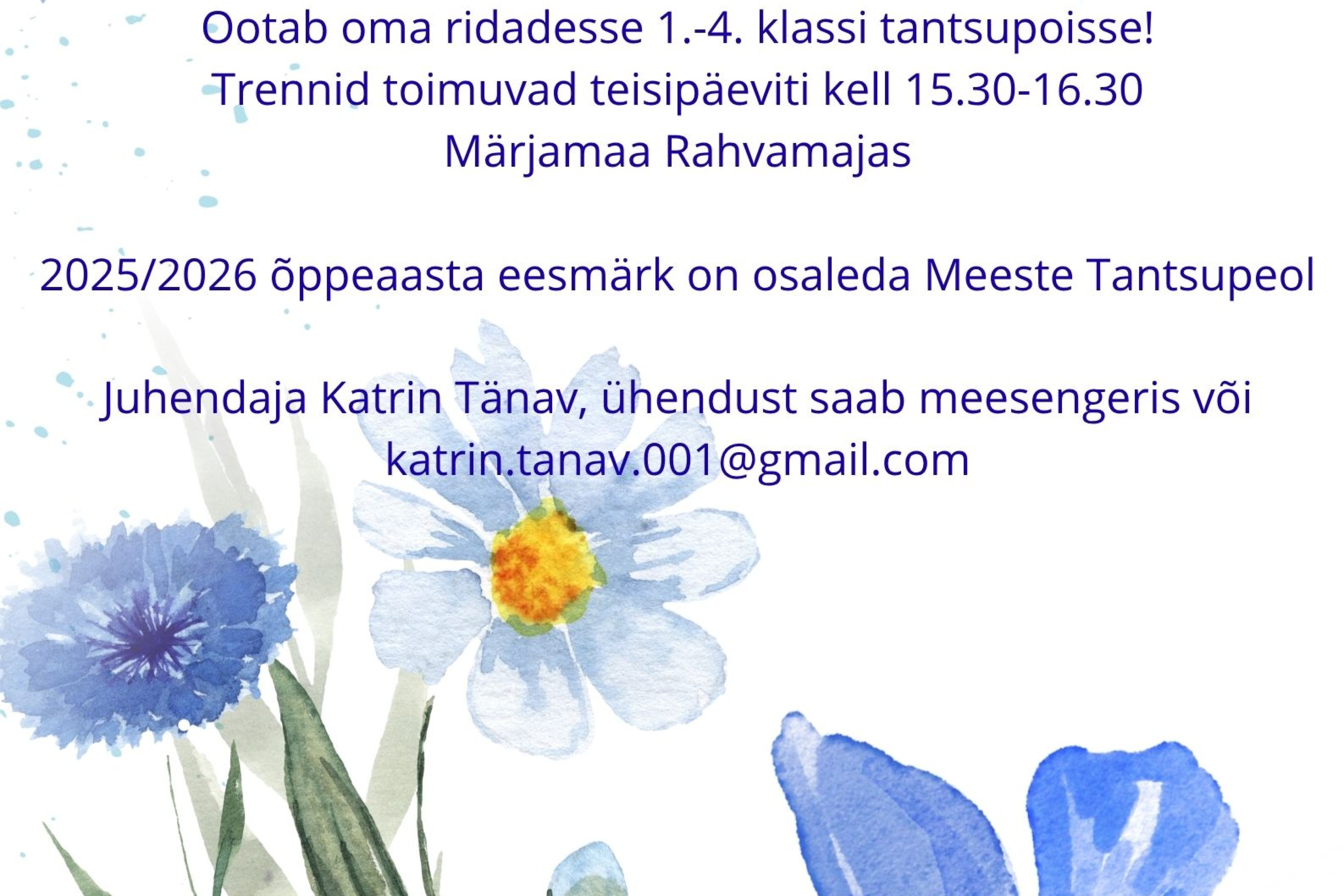 Tule tantsima! Ootame oma ridadesse 1.–4. klassi poisse, kes soovivad õppida rahvatantsu ja esineda laval.