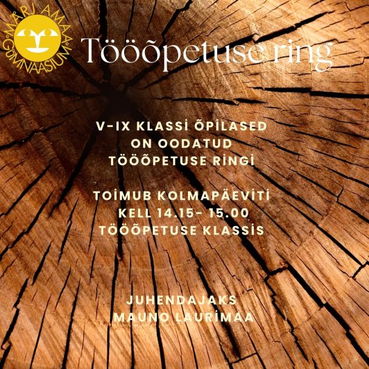 Ringitunnid toimuvad kolmapäeviti kell 14.15–15.00 tööõpetuse klassis.