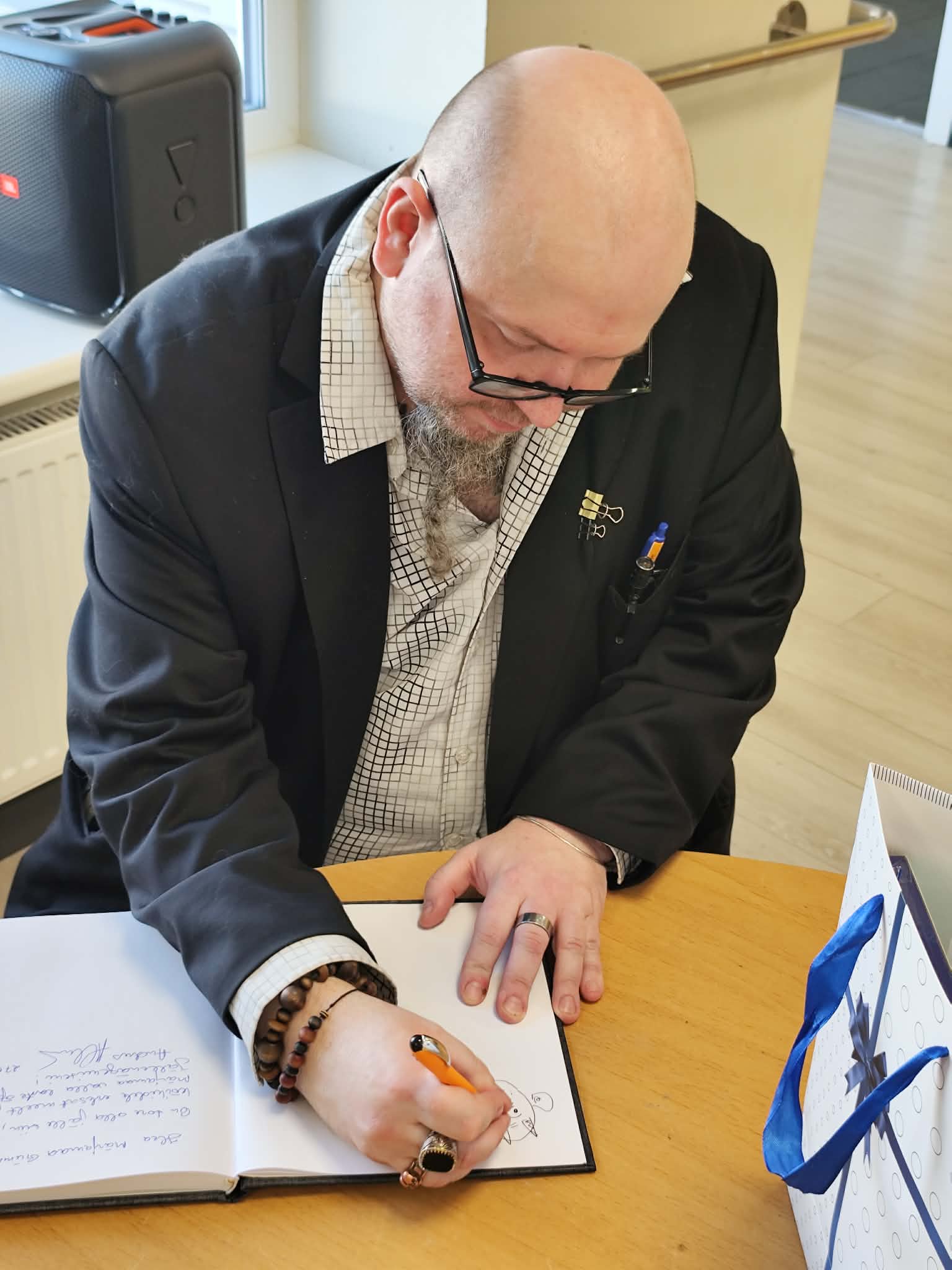 Suur aitäh direktor Eerole, et tõid meie majja sellise „emakeelekoletise“ – nagu Jürgen Rooste ise oma autogrammis naljatamisi märkis.